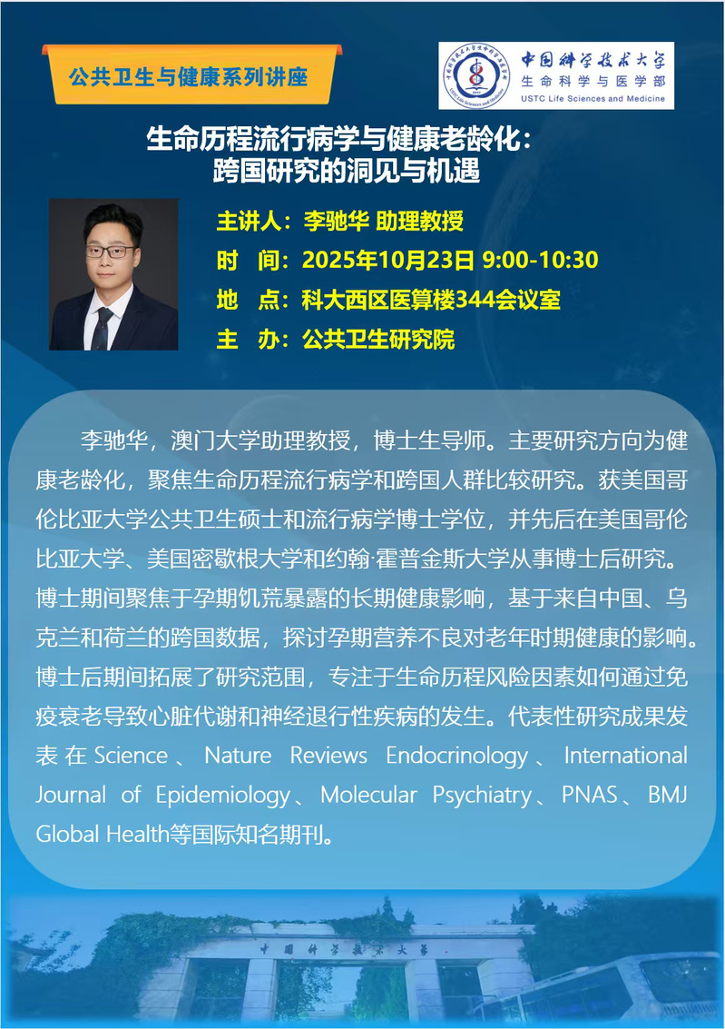 公共卫生与健康系列讲座:2025.10.23 澳门大学李驰华助理教授学术报告会