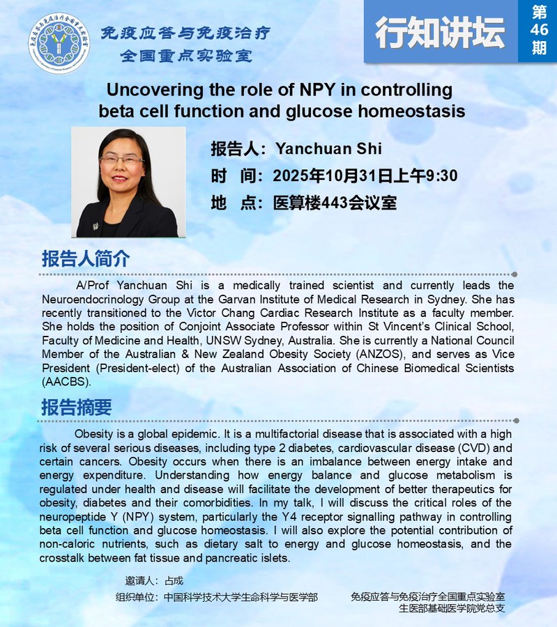 行知讲坛:2025.10.31 悉尼加尔文医学研究所Yanchuan Shi教授学术报告会
