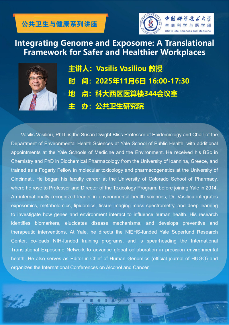 公共卫生与健康系列讲座:2025.11.06 耶鲁大学Vasilis Vasiliou教授学术报告会