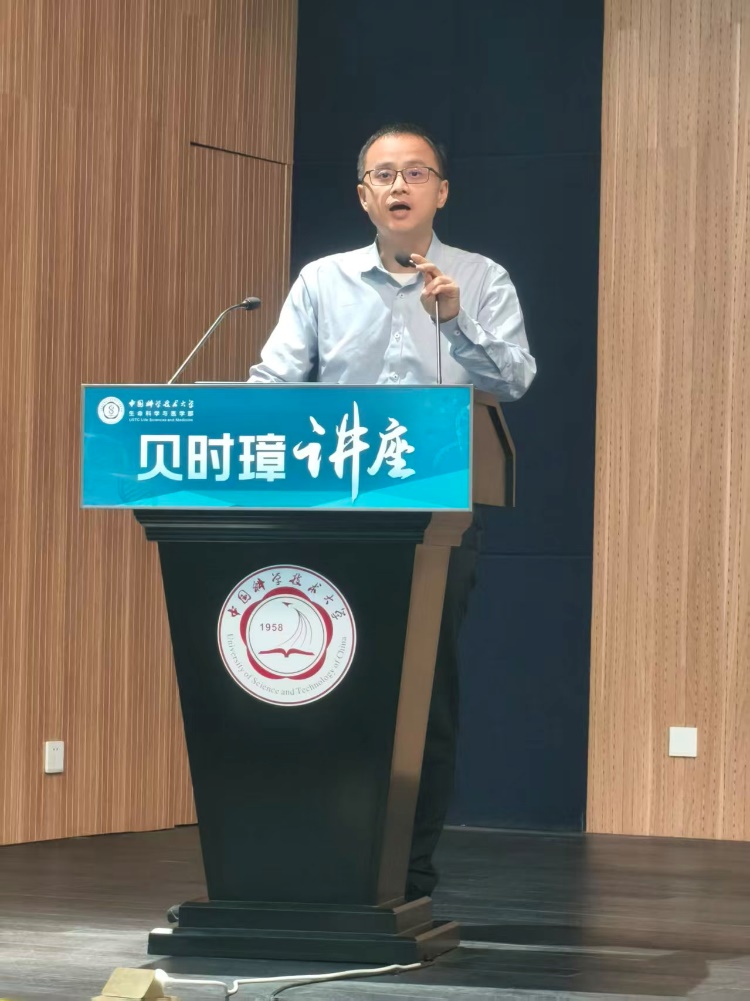 2025年10月31日上午,中国科学技术大学生命科学与医学部“贝时璋讲座”第70期在生命科学大楼一楼学术报告厅成功举行。本次讲座荣幸地邀请到浙江大学求是特聘教授马欢作学术报告。刘际研究员主持会议并为马欢教授颁发了“贝时璋讲座”纪念牌。王朝教授、朱洪影教授、朱霞教授等多位部内教师及研究生代表80余人参加了讲座。