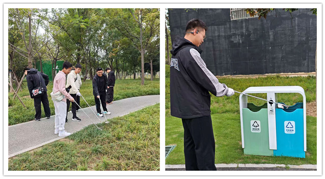 上午九点,同学们穿梭在草坪、树丛和小路之间,细致地搜索“隐藏”在石缝、草丛里的烟头、包装纸、塑料瓶盖等垃圾。他们或弯腰俯身,或用长夹夹起,不放过任何一个角落,用细致还原骆岗公园的洁净。劳动中,大家齐心协力,分工明确:有的同学深入灌木丛中进行清理,有的同学负责搬运手套、垃圾夹等工具,还有的同学捡拾砖缝间被随意丢弃的烟蒂。劳动的汗水浸透了衣衫,额角的汗珠顺着脸颊滑落,但同学们专注的眼神和捡起垃圾时的自豪欢呼,构成了一幅幅动人的画面,默契也在协作中不断滋生。