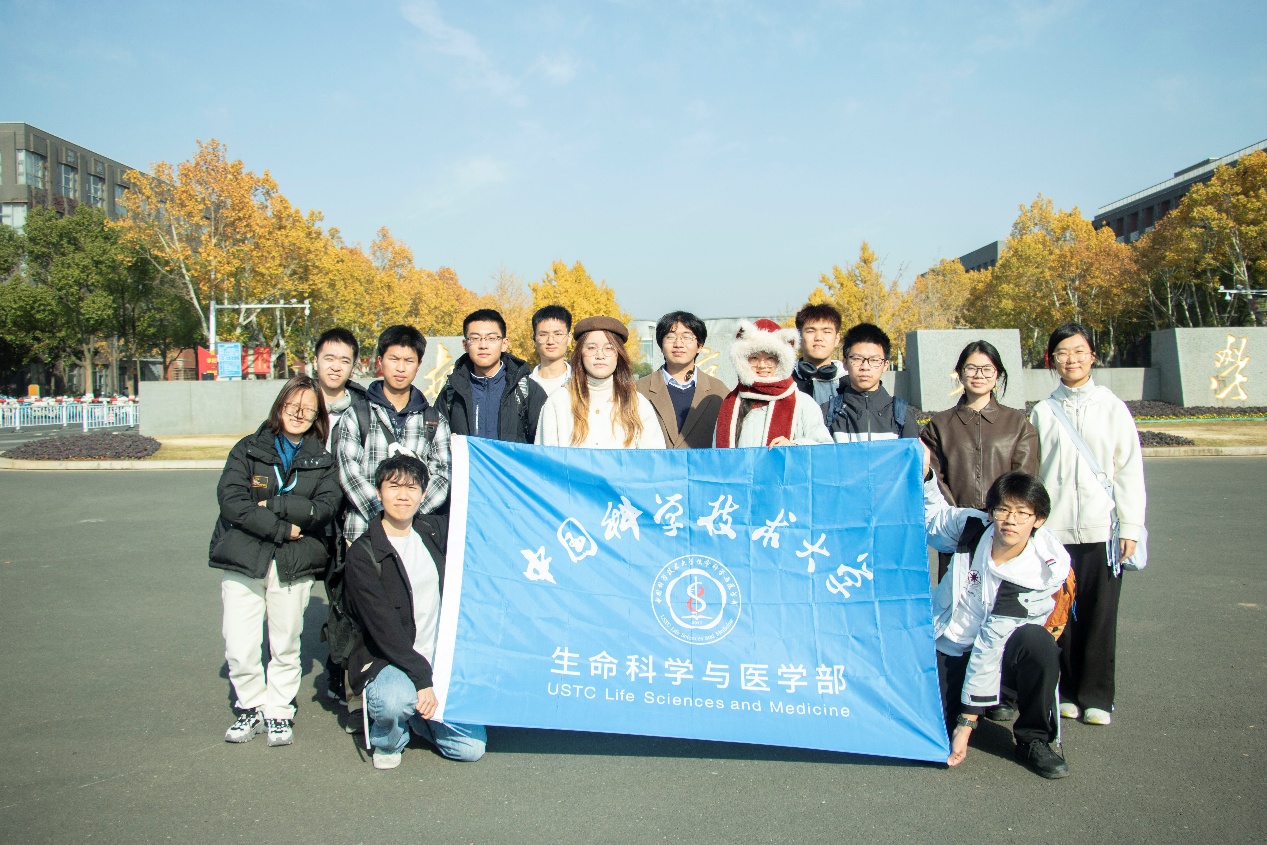 为促进校际学生组织交流,拓宽学术视野、推动文化互鉴,近日,中国科学技术大学生命科学与医学部学生会携手南京大学生命科学学院学生会、浙江大学生命科学学院学生会共同举办了三校联谊交流活动。本次活动以“互学互鉴、协作共进”为主题,通过实地参访、座谈研讨、文化体验等形式,搭建起跨校沟通与合作的有效平台。11月30日上午,中国科学技术大学生命科学与医学部学生会代表抵达南京大学仙林校区,与南京大学、浙江大学两校生命科学学院学生会成员会合。在南京大学同学的带领下,三校代表一同参观了生命科学大楼并合影留念。南京大学同学系统介绍了学校的发展历程、学科优势与校园文化,让与会同学深入领略到其“诚朴雄伟、励学敦行”的学术风气。