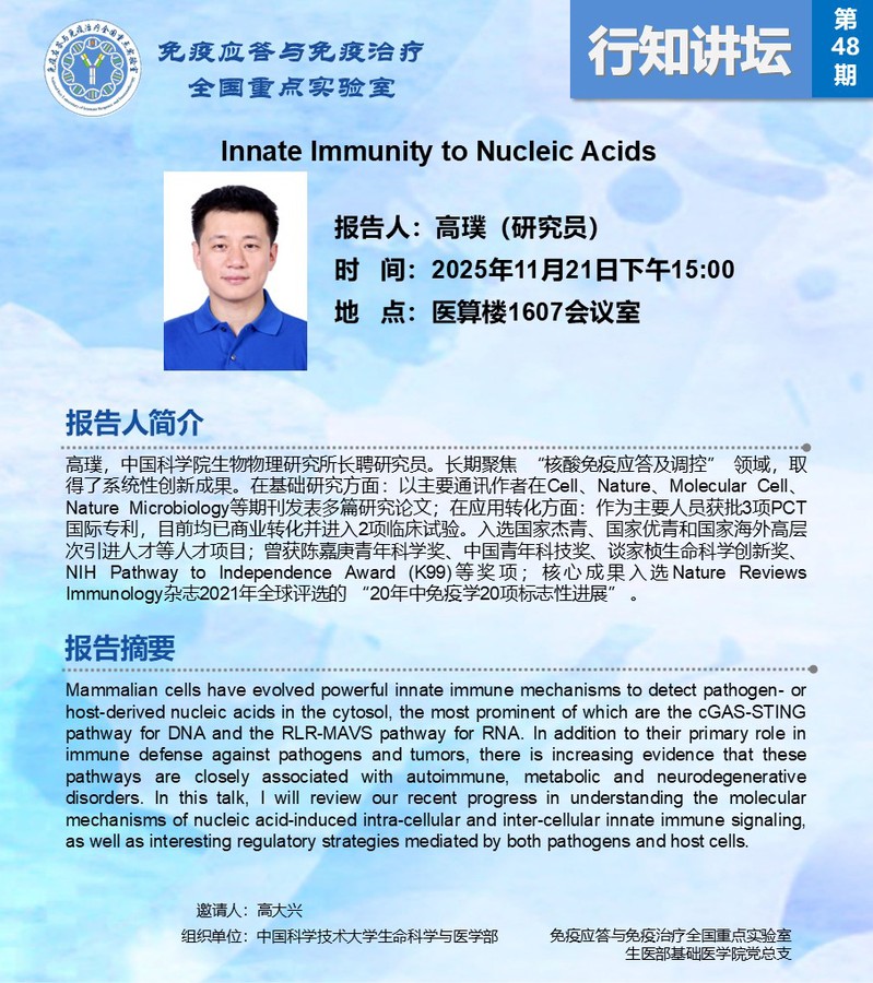 行知讲坛:2025.11.21 中国科学院生物物理研究所 高璞研究员 学术报告会