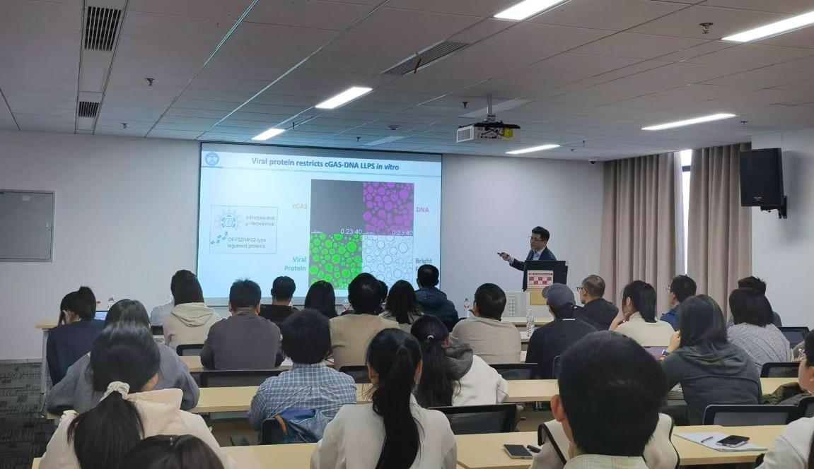最后环节高璞研究员和与会专家以及师生们展开了热烈讨论,包括针对不同自身免疫疾病亚型选择靶向cGAS或STING的治疗策略,开发构象特异性抗体的技术挑战,以及相分离液滴的大小与功能效率的关系。与会专家还探讨了原核与真核系统中cGAS-like蛋白的差异,叶酸浓度对cGAS通路的生理调节意义,以及相分离能力与蛋白相互作用强度的关系等学术问题,为后续研究提供了重要思路。