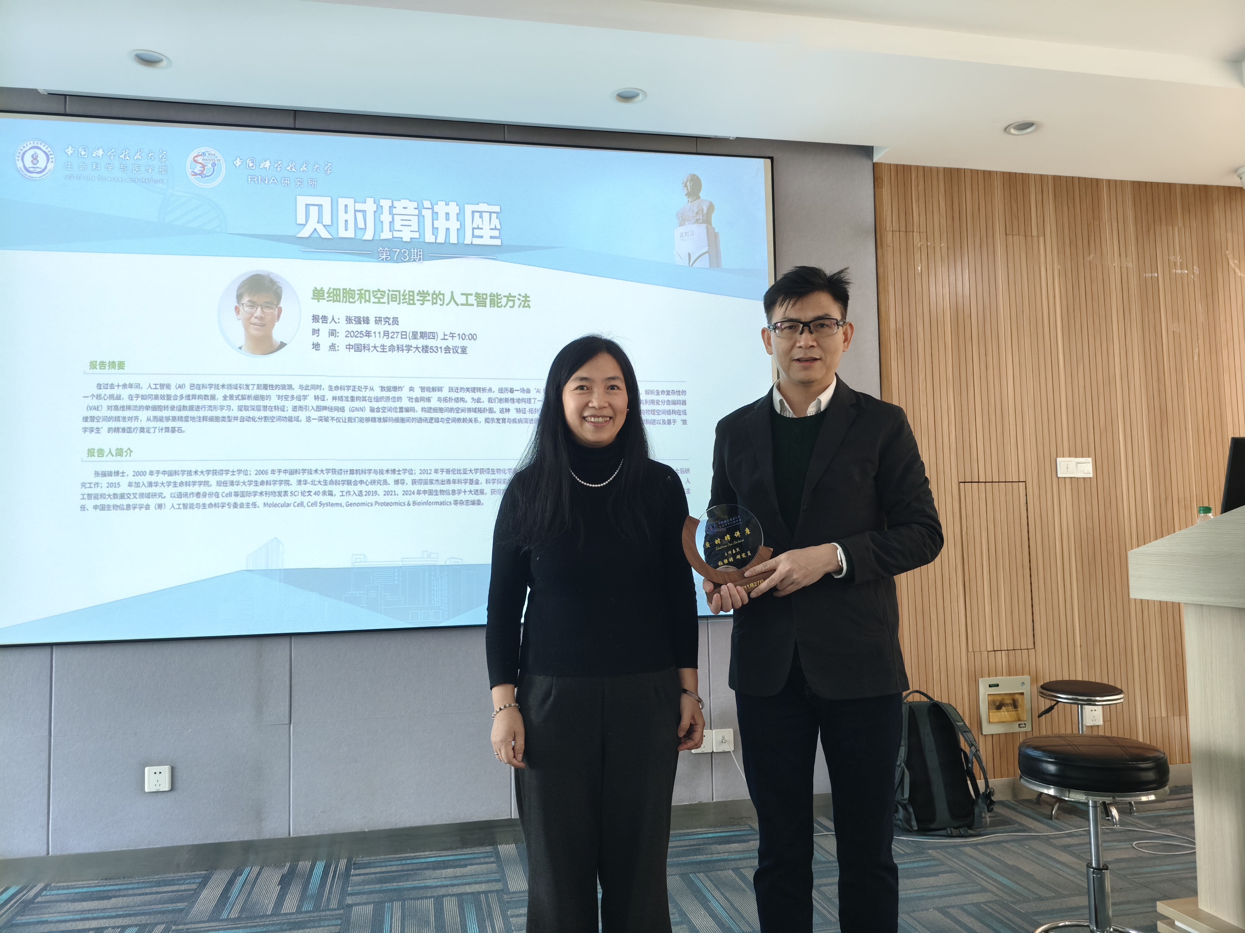 2025年11月27日上午,中国科学技术大学生命科学与医学部第 73 期“贝时璋讲座”在西区生物楼531会议室顺利举行。本期讲座特邀清华大学生命科学学院张强锋研究员担任主讲嘉宾,作题为《单细胞和空间组学的人工智能方法》的学术报告。讲座由生命科学与医学部宋晓元教授主持。讲座伊始,宋晓元教授简要回顾了“贝时璋讲座”的创办初衷,并对张强锋研究员的到访表示热烈欢迎。