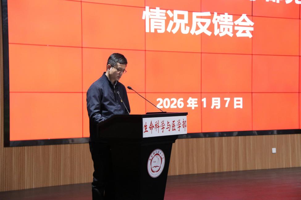 1月7日下午,校党委第三巡视组巡视生命科学与医学部党委情况反馈会在西校区生物楼一楼学术报告厅召开。第三巡视组组长彭慧、副组长齐鹏、朱云浩及巡视组全体成员,巡视办副主任汤茜,生命科学与医学部党政领导班子成员、教职工代表、学生代表,以及大健康研究院领导班子成员参加会议。会议由生医部党委书记、副部长臧建业主持。
