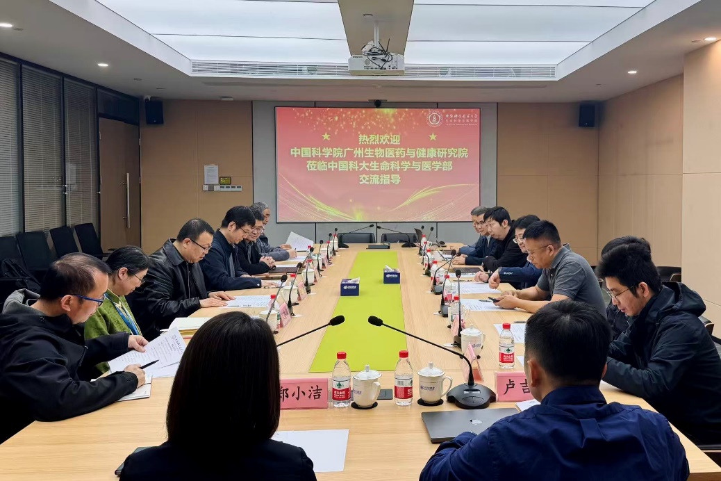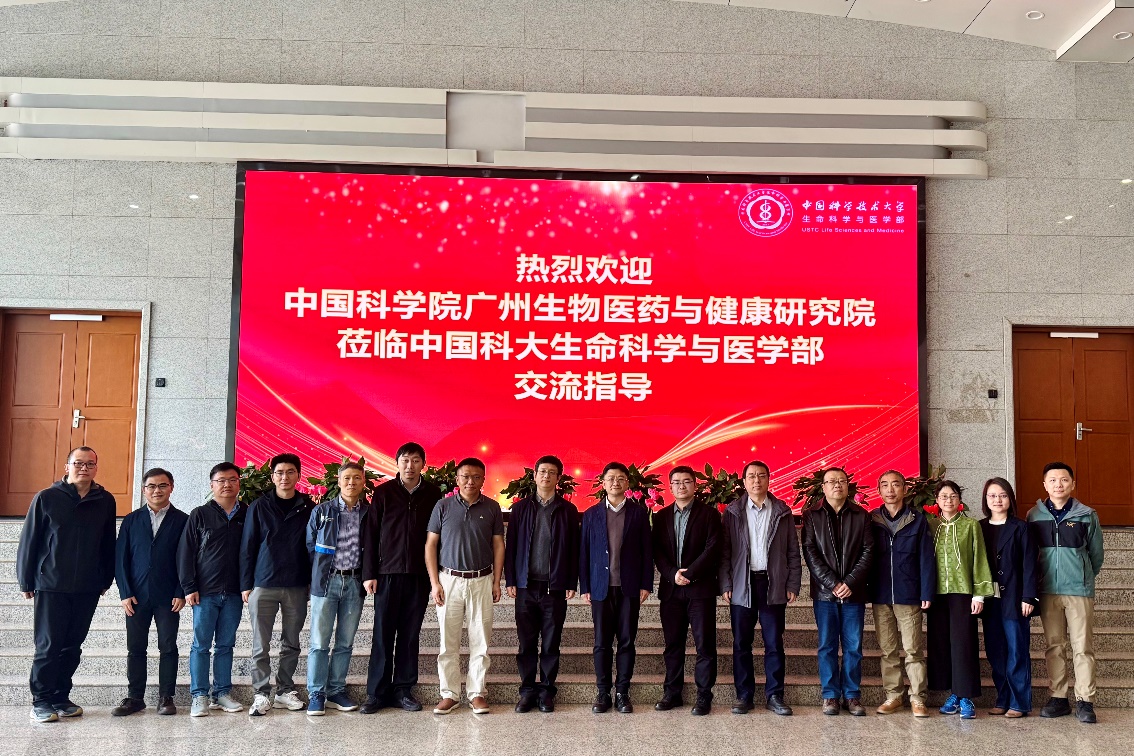 2026年3月25日上午,中国科学院广州生物医药与健康研究院副院长孙飞率队到访中国科学技术大学生命科学与医学部,围绕深化科教融合开展交流座谈。中国科学技术大学生命科学与医学部党委书记臧建业主持接待并参与座谈。