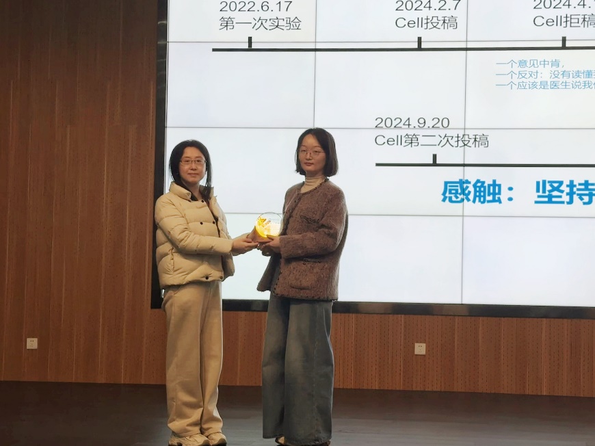 论坛尾声,潘文教授代表学部向侯熠文教授颁发了“贝时璋一作论坛”特邀嘉宾纪念牌,感谢其带来的高质量学术分享以及在造血干细胞移植领域作出的重要科研贡献。
