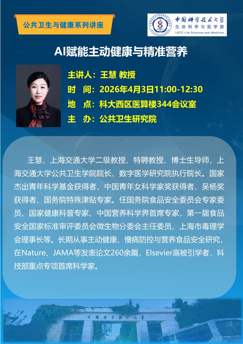 公共卫生与健康系列讲座:2026.04.03 上海交通大学王慧教授学术报告会